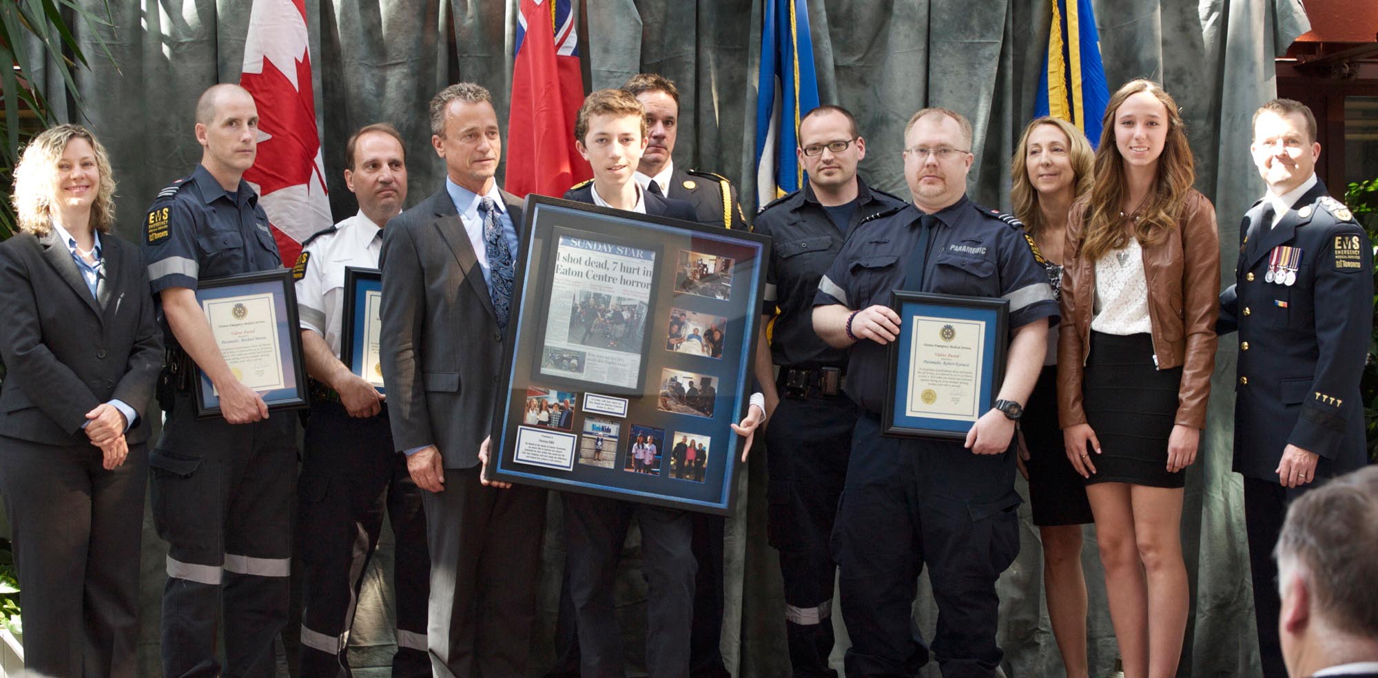 Connor Stevenson and family with Toronto EMS staff