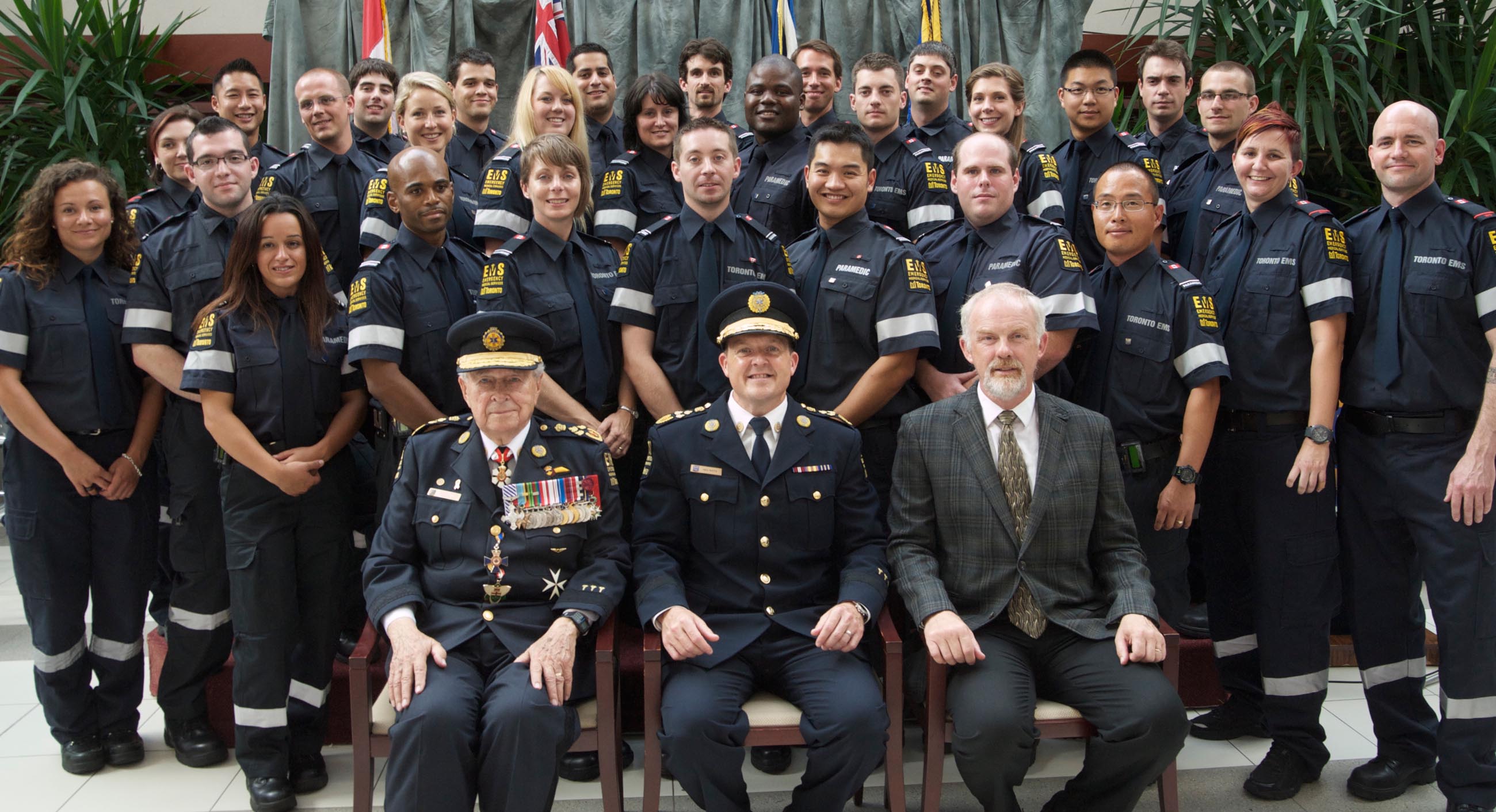 The Graduating Paramedic and EMD Classes with General Rohmer, Chief Raftis, and Doctor Verbeek